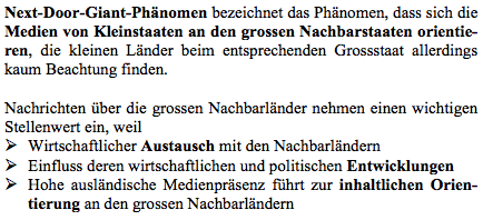 | Kleinstaatlichkeit - Auswirkungen der Kleinstaatlichkeit auf die Medienbranche: Auslandsorientierung/ Next-Door-Giant Phänomen | |