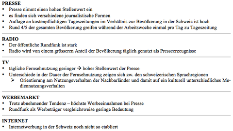| Mediensystem Schweiz: Nutzung nach Mediengattungen |