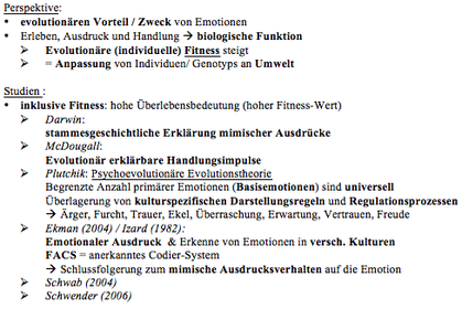 | Emotionen Emotionstheorien: evolutionstheoretisch-funktionale Perspektive | |