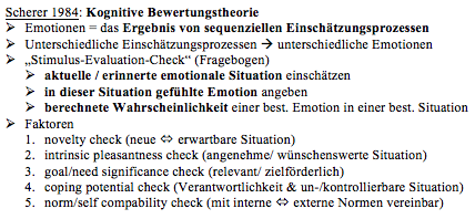 | Emotionen Emotionstheorien - kognitiv-attributive Perspektive: Kognitive Bewertungstheorie (Scherer 1984) | |