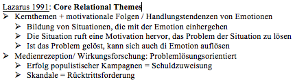 | Emotionen Emotionstheorien - kognitiv-attributive Perspektive: Core Relational Themes (Lazarus 1991) | |