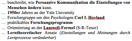 | Rezeption III: Einstellung Wirkungsforschung - Einstellungskonzept Yale-Ansatz zur Einstellungsänderung: Laborexperimente | |