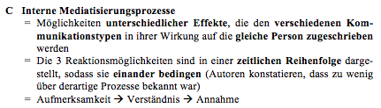 | Rezeption III: Einstellung Wirkungsforschung - Einstellungskonzept Yale-Ansatz zur Einstellungsänderung (Yale Attitude Change Approach) | |