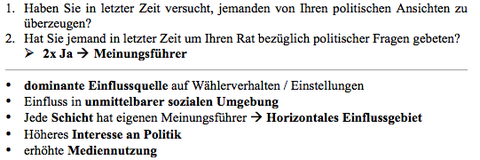 | Rezeption III: Einstellung Two-Step-Flow & Meinungsführerkonzept Schlussfolgerungen |