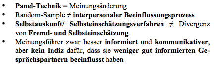 | Rezeption III: Einstellung Two-Step-Flow People's Choice-Studie / Erie-County-Studie (Lazarsfeld, Berelson, Gaudet, 1940): Ermittlung von Meinungsführern | |