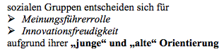 | Rezeption III: Einstellung Meinungsführerkonzept Strukturmerkmale sozialer Gruppen | |