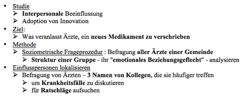 | Rezeption III: Einstellung Meinungsführerkonzept Drug Study (Coleman/ Katz/Menzel) : Studie | |