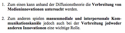 | Wirkung I: Diffusionsforschung Diffusion / Diffusionsprozesse (Rogers 2003) | |