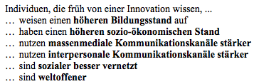 | Wirkung I: Diffusionsforschung Innovation Eigenschaften einer Innovation | |