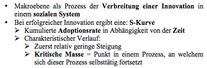 | Wirkung I: Diffusionsforschung Zeit (Makroebene) Innovations-Entscheidungs-Prozess (Rogers 2003) kritische Masse | |