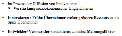 | Wirkung I: Diffusionsforschung Soziale Systeme sozioökonomische Ungleichheiten (Gotsch, 1972) | |