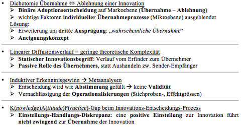| Wirkung I: Diffusionsforschung Kritik I | |