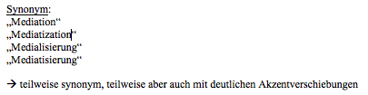| Medialisierung Begriffsabgrenzung: Medialisierung ⇔ Mediatisierung | |