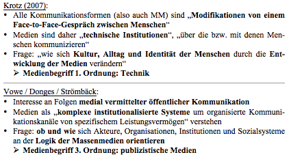 | Medialisierung Unterschiede des Medienbegriffs: Krotz vs. Vowe/Donges/Strömbäck | |