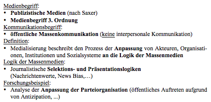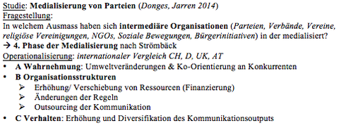 | Medialisierung Medialisierungauf der Meso-Ebene Mediatizationof Political Organizations (Donges, Jarren, 2014): Studie | |