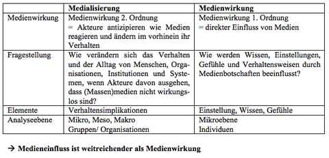| Medialisierung Medialisierung vs. Medienwirkung | |