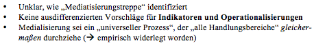| Medialisierung Forschung zu Medialisierungprozessen Medialisierungtreppe (Vowe): Kritik | |