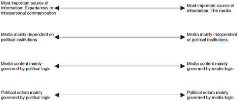 | Medialisierung Forschung zu Medialisierungprozessen Four Dimensions of Mediatization of Politics (Strömbäck, 2008) | |