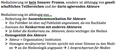 | Medialisierung Forschung zu Medialisierungprozessen unterschiedliche Medialisierunggrade: Teilbereiche und deren Akteure | |