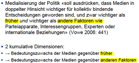 | Medialisierung Medialisierung nach Vowe / Donges / Strömbäck | |