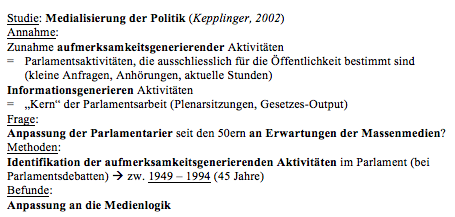 | Medialisierung Medialisierung der Politik Medialisierungdes Parlaments (Kepplinger, 2002): Studie | |