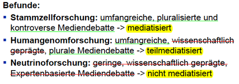 | Medialisierung Medialisierung von Wissenschaft Wissenschaftsberichterstattung (Schäfer, 2008): Befunde | |