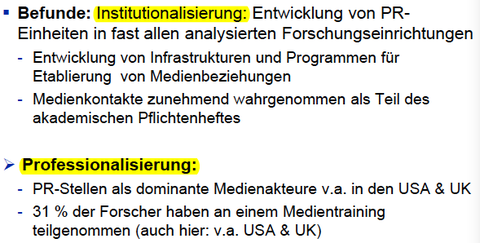 | Medialisierung Medialisierung von Wissenschaft Forscher und Forschungsinstitutionen (Peters, 2012): Befunde | |