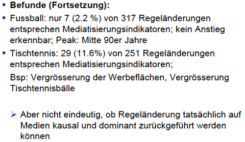 | Medialisierung Medialisierung des Sports Regeländerungen (Dohle/ Vowe/ Wodtke, 2009): Befunde | |
