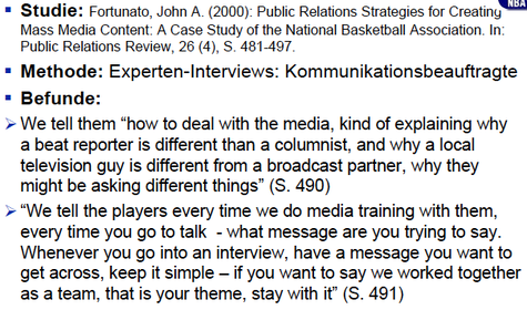 | Medialisierung Medialisierung des Sports Study of the national Basketball Association (Fortunato, 2000) | |