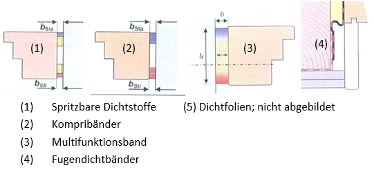 Bauanschlussfuge (Holzfenster) | Abstand Blendrahmen Mauerwerk Spritzbares Dichtstoffe: ≥ 10 mm (10 -15 mm) Kompribänder bis 1,5 m ≥ 6 mm darüber ≥ 8 mm Prinzipiell gilt: ≥ 10 mm (10 mm – 15 mm) Angaben im Leitfaden zur Montage… zu Kunststofffenstern weichen von denen für Holzfenster ab! |