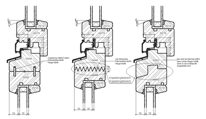 Verbundfenster | Das Verbundfenster unterscheidet sich zum Einfachfenster dadurch, dass der Flügel aus zwei fest miteinander verbunden hintereinander liegenden Einzelflügeln mit gemeinsamer Drehachse zusammen gesetzt sind. |
