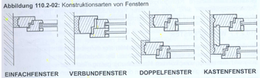 Doppelfenster | Dies ist z.B. ein Kasten- oder Verbundfenster mit zwei hintereinander liegenden Glasebenen, also mit Innen- und Außenflügel. Sie schlagen entgegengesetzt auf. |