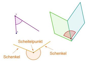| Was ist der Scheitelpunkt S und was sind die Schenkel des Winkels? | Der Schnitt- bzw. Berührpunkt der beiden Geraden oder Ebenen heißt Scheitelpunkt S, die Geraden selbst Schenkel des Winkels. |