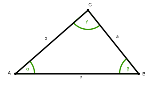 | Wie beschriftet man die Innenwinkel eines Dreiecks? | Die Innenwinkel beschriftet man mit α bei A, β bei B und γ bei C. |