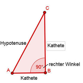 | Welche Bezeichnungen gibt es beim Rechtwinkligen Dreieck? | Die Seiten des Dreiecks, welche den rechten Winkel bilden, bezeichnet man als Katheten . Die Seite gegenüber dem rechten Winkel bezeichnet man als Hypotenuse . |