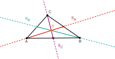 | Was ist eine Seitenhalbierende? | Die Seitenhalbierenden eines Dreiecks sind Geraden, die von einem Eckpunkt des Dreiecks durch den Mittelpunkt der gegenüberliegenden Seite gehen. In jedem Dreieck schneiden sich die drei Seitenhalbierenden in einem Punkt, dem Schwerpunkt. |