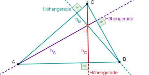 | Was ist die Höhe eines Dreiecks? | Die Höhen eines Dreiecks sind die Längen der Lote, die auf einer Dreiecksseite liegen und durch den gegenüberliegenden Punkt gehen. Die Höhengeraden schneiden sich in einem Punkt. |