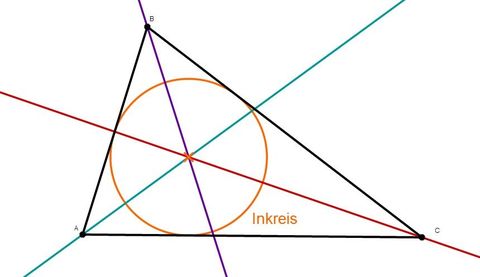| Was ist der Inkreis? | Der Inkreis eines Dreiecks, ist der Kreis, der alle Seiten von innen genau einmal berührt. Alle Seiten sind also Tangenten des Inkreises. Sein Mittelpunkt ist der Schnittpunkt der Winkelhalbierenden. |