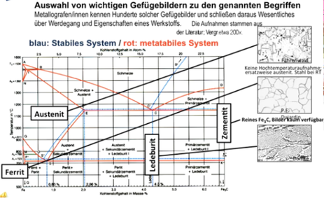 | Eisen-Kohlenstoff-Diagramm 2 Varianten | metastabil stabil |