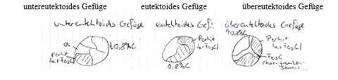 | 3 unterschiedliche Formen von Zementit | -Primärzementit (primäre Kristallisation aus der Schmelze) -Sekundärzementit (Ausscheidung aus dem Austenit) -Tertiätzementit (Ausscheidung aus dem Ferrit) |