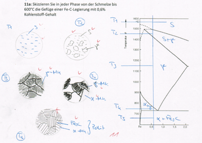| Wie verändern sich die Stahleigenschaften mit zunehmendem Kohlenstoff-Gehalt? (3) | spröder, härter, Zementitanteil steigt |