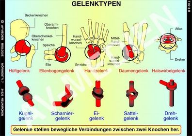 | 1 Kugelgelenk wo ? 2 Scharniergelenk ? 3 Sattelgelenk ? | 1 Huft, Schulter 2 Zehen, Finger, Ellbogen 3 Daumen |