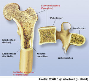 | Schwammknochen (Spongiosa) | Macht den Knochen sehr stabil, ohne das er selbst schwer wird |