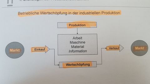 | Betriebliche Wertschöpfungskette der industriellen Produktion | Markt - Einkauf - Wertschöpfung - Verkauf - Markt |