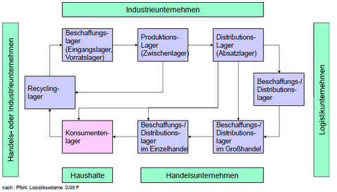 | Umschlaglager (Durchgangslager) | hohe Umschlagleistung transportorientiert Material, Halb- und Fertigfabrikate, Handelsware |