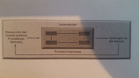 | Unternehmen (Verhaltenstheoretische Definition) Grafik | Ressourcen der Umwelt - Unternehmen (Organisationsstruktur also Hierarchie, Arbeitsteilung, Regeln, Verfahren und Geschäftsprozesse und Prozess also Rechte/Verpflichtungen, Privilegien/Verantwortlichkeiten, Werte, Normen, Menschen) - Leistungen an die Umwelt |