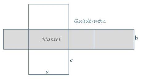 | Würfel Oberfläche (hier ausgebreitet als Würfelnetz) | a = b = c <-> Kanten sind gleich lang! |