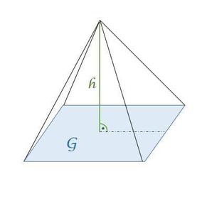 | gerade Pyramide Volumen | die Grundfläche kann ein beliebiges n-Eck (n für 3, 4, 5 ... ) sein. Danach richtet sich der Inhalt der Grundfläche (Flächenformel) |