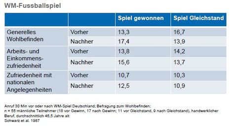 | Beurteilung der subjektiven Einschätzung | Zsmnhang von Lebenszufriedenheit heute und vor 14 Tagen lediglich Korrelation von 0,59 (Kahnemann und Tversky) -Durch Modifizierung der Umfragemethodik können Stimmungsabhängigkeiten minimiert werden -Ausfüllen anonymer Fragebögen vermeidet Beeinflussung durch interviewer u erhöht Ws, ehrlich Antwort zu erhalten |