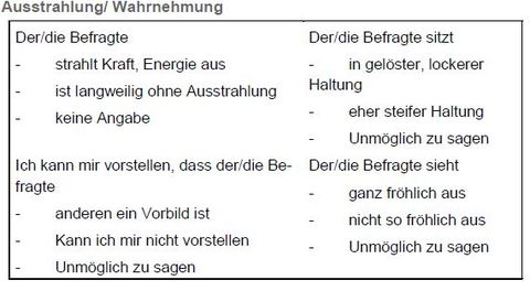 | Objektive Glückseinschätzung | - Fremdeinschätzung der Stimmung anhand von Mimik, Gestik und Körpersprache -Entwicklung eines Kriterienkataloges von Elisabeth Noelle-Neumann zur Einschätzung von Interviewern des Instituts für Demoskopie Allensbach nach einer Befragung |